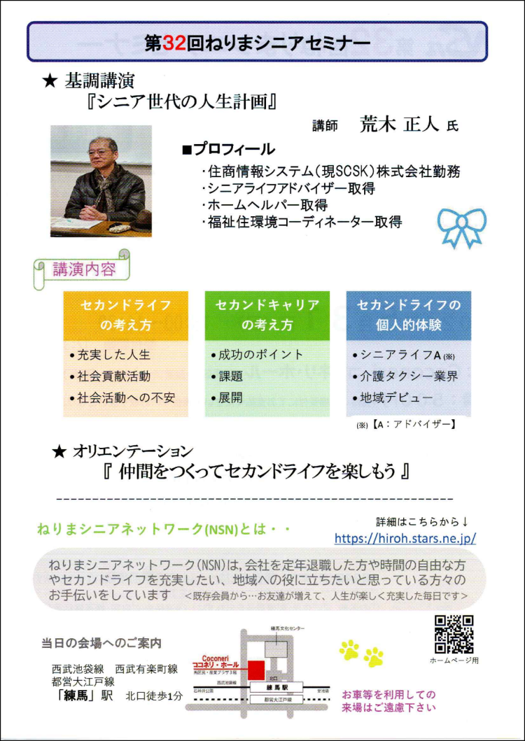 〇ねりまシニアセミナー開催案内チラシ